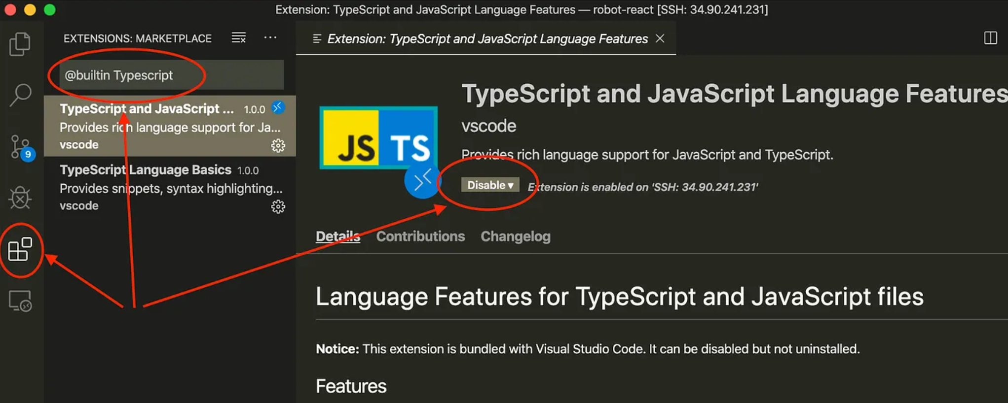 - Hit the extensions button in VS Code (which looks like building blocks on the left toolbar)